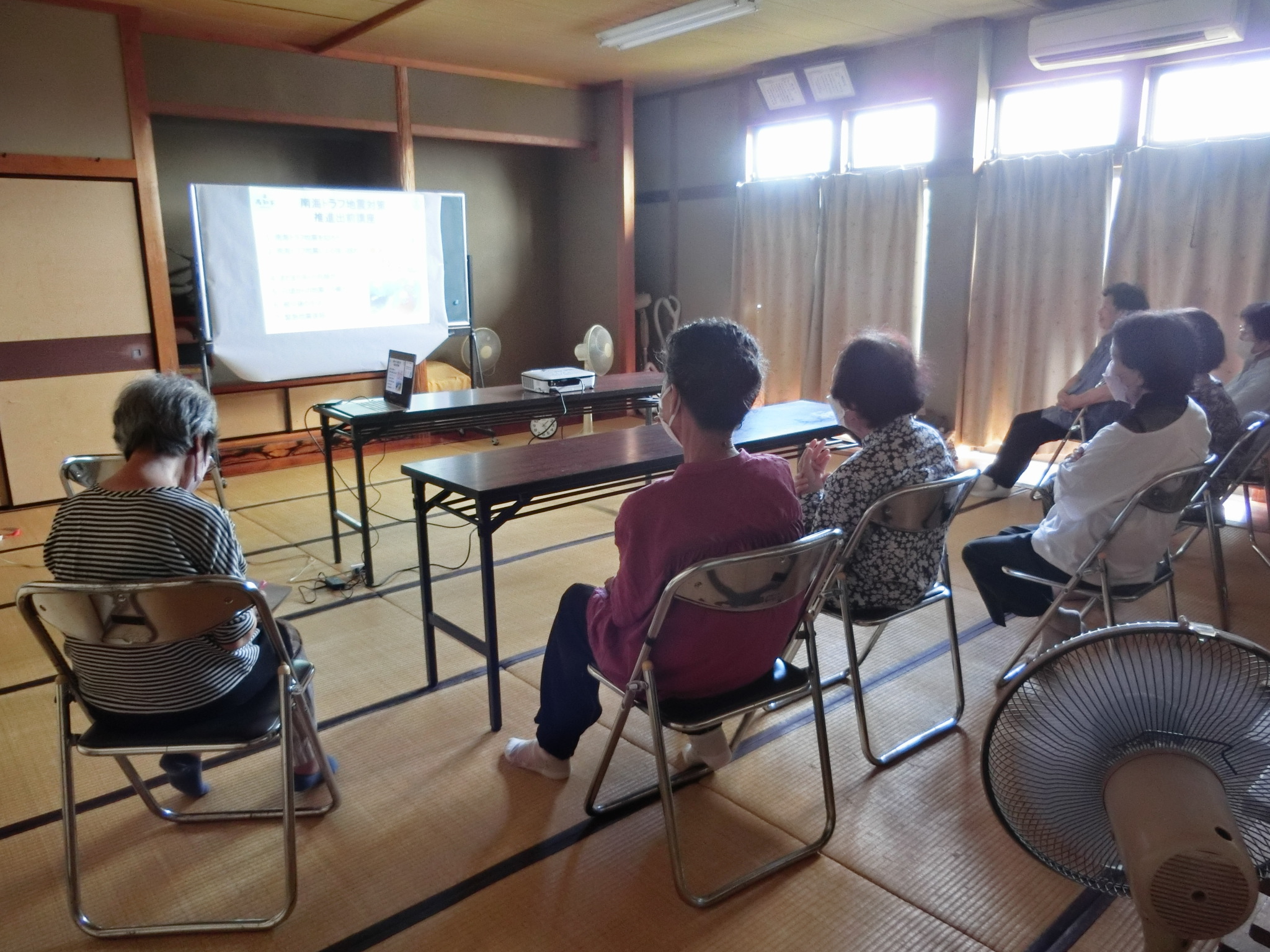 高齢の方が多く参加していましたので、講義前の雑談で南海トラフ地震をどの様に捉え、どういった備えを行っているかを聞いてみましたが、一人で住んでいて、いつ死んでも誰も悲しまないので、特に何もしていないとのことでした。
