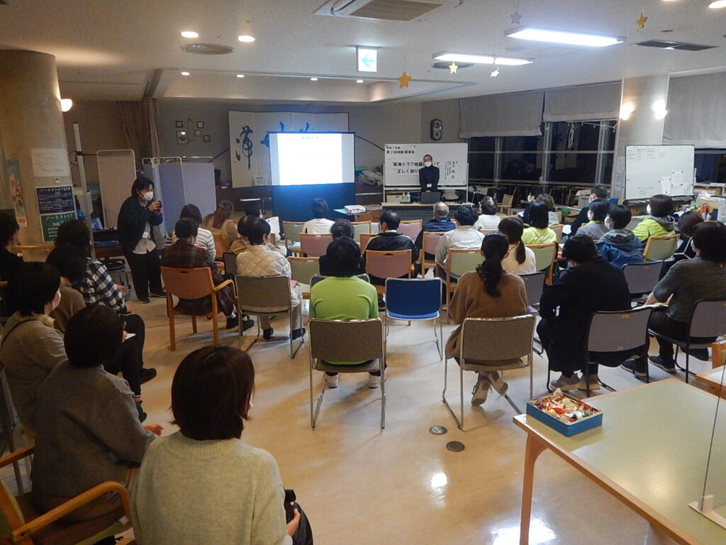 施設では普段から地震対応について話し合われているとのことで、参加された方々は熱心に聴講されていました。 (コメント:北川)